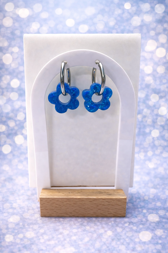 Fleur bleue pailletée